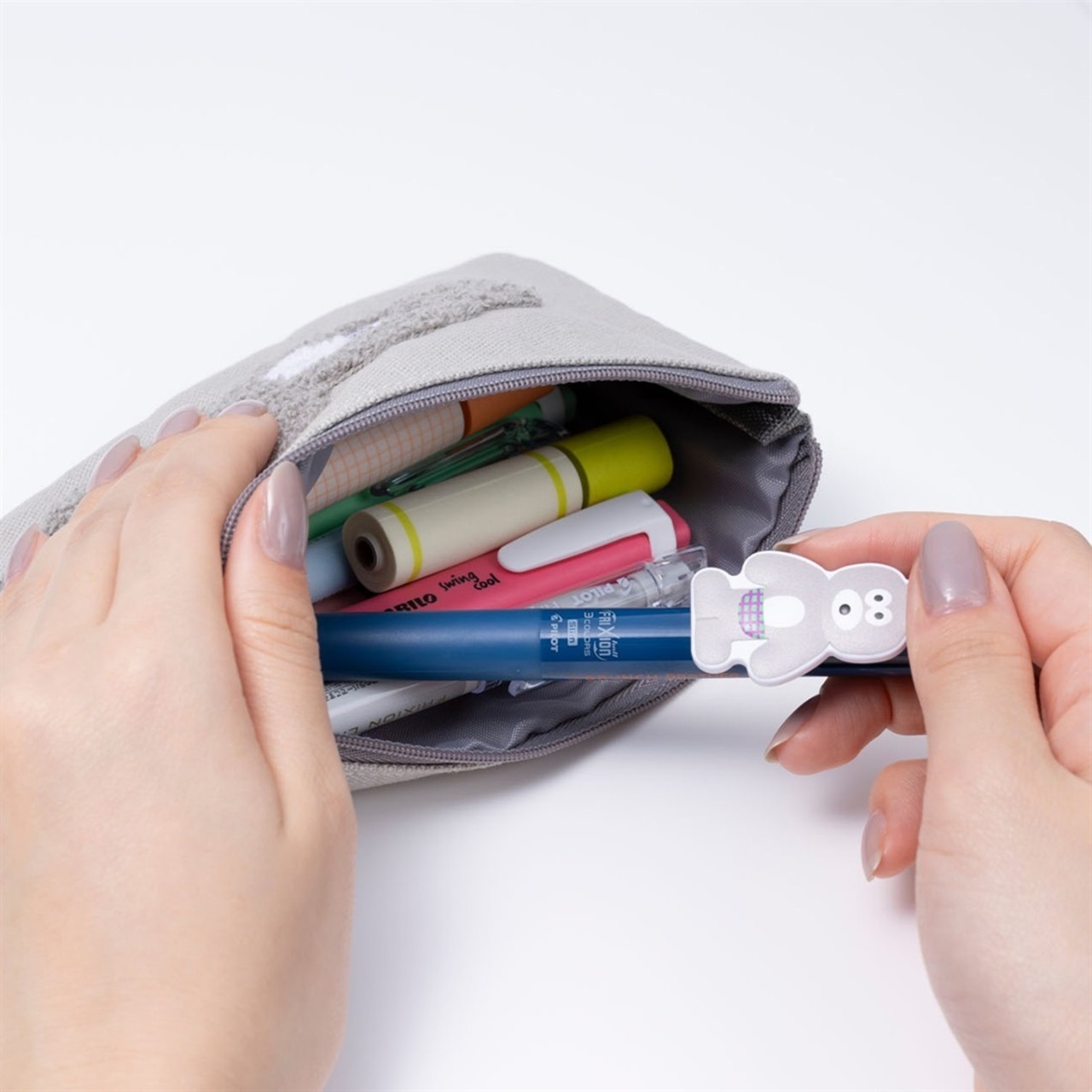 シリーズの人気のキャラクターたちが大胆な刺繍で施されたデザイン。マチの少ないフラットタイプでありながらも、高さがあるのでたっぷり収納できます。「ブランチブラザー」のデザインのペンや手帳やノートと合わせて選ぶのもおすすめ。毎日の勉強やデスクワークのお供としてもぴったりのアイテムです。
