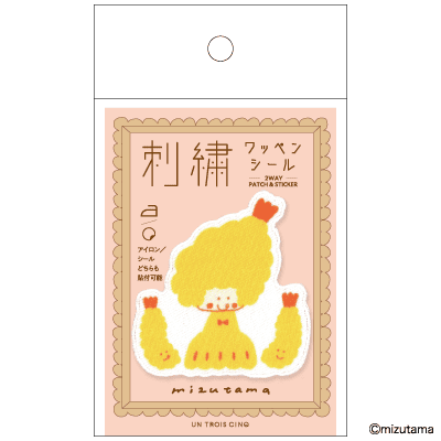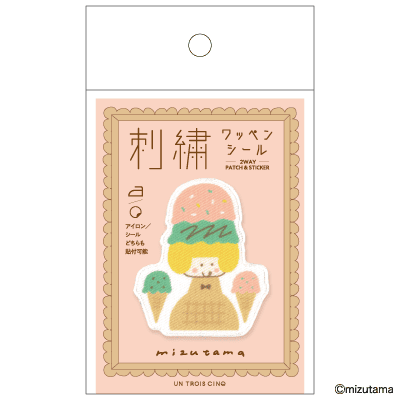 シールとアイロンワッペンの2つの使い方ができるシールです。ノートやスマホなどにそのまま貼ってデコレーションしたり、服や布小物にアイロンワッペンとして貼り付けたりして、お気に入りのアイテムを簡単にデコレーションすることができます。イラスト部分は、触り心地の良い糸で織られたツイル生地に、プリントで細かなところまで再現しました。